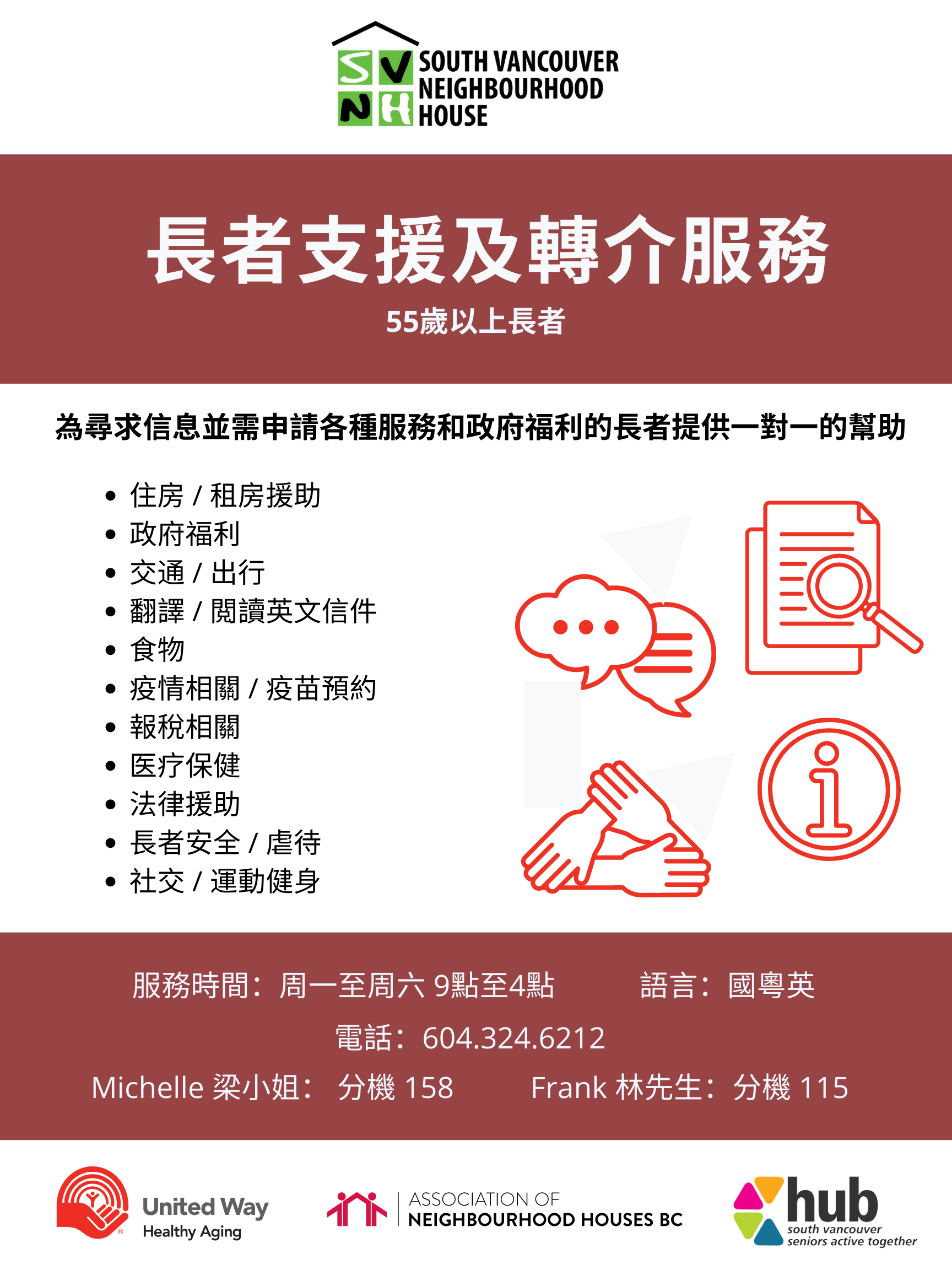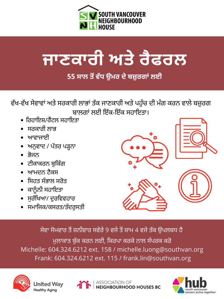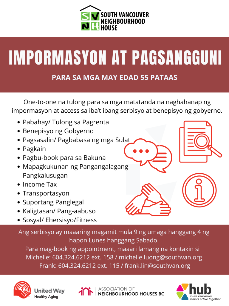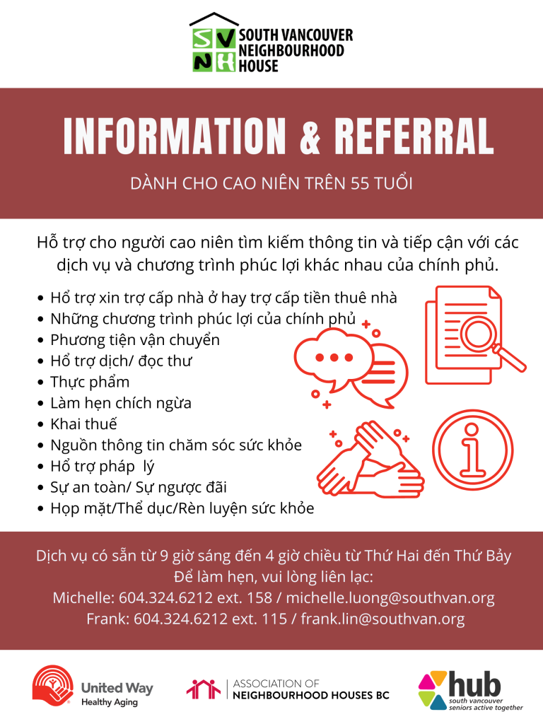 - Michelle: (604) 324-6212 ext 158 or michelle.luong@southvan.org